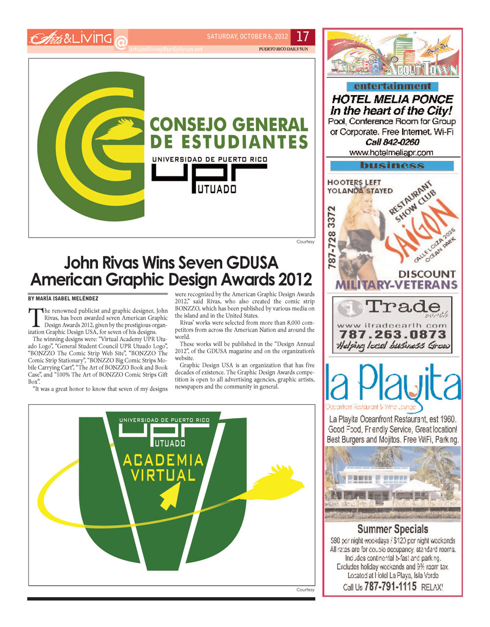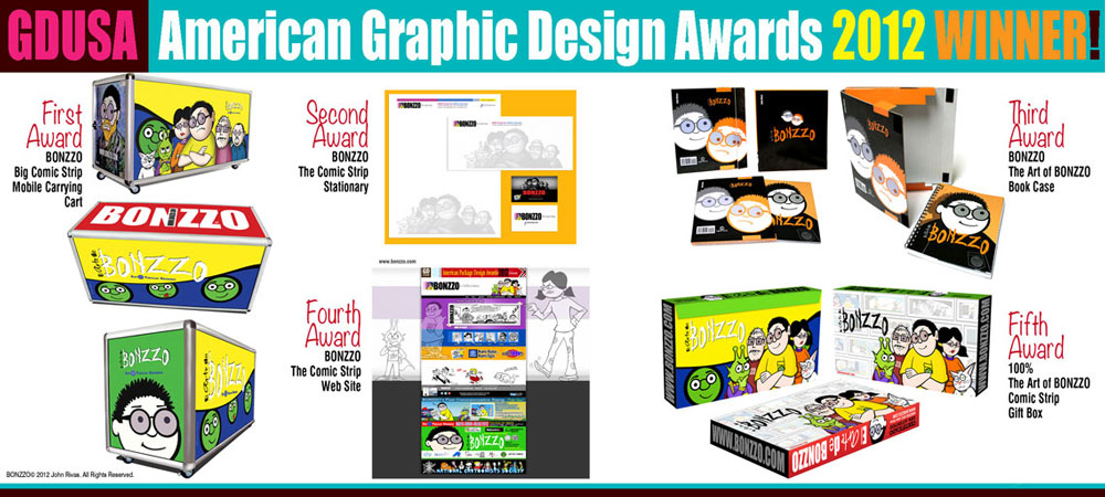 The winning designs were: "Virtual Academy UPR Utuado Logo", “General Student Council UPR Utuado Logo", “BONZZO The Comic Strip Web Site”, “BONZZO The Comic Strip Stationary”, “BONZZO Big Comic Strips Mobile Carrying Cart”, “The Art of BONZZO Book and Book Case”, and “100% The Art of BONZZO Comic Strips Gift Box”.